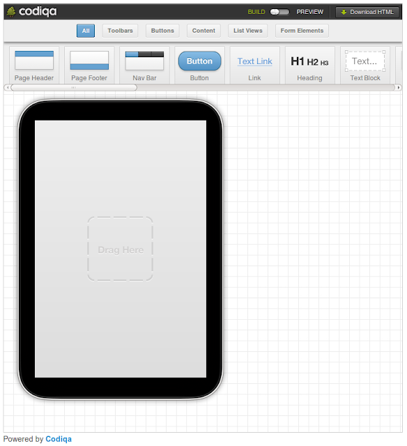 ค้างเขียนเรื่องนี้มาได้ 2 อาทิตย์ ไม่มีกำลังใจเขียนสักที วันนี้วันดีก็เลยเร่งเขียนเพราะเดี๋ยวจะไม่มีเวลามาเขียน Blog แบบนี้อีก ครั้งนี้จะมาแนะนำเครื่องมือที่ช่วยในการสร้าง Prototype อย่างง่ายๆ เรียกได้ว่าไม่ต้องเขียน HTML กันเลยทีเดียว อ้อ ลืมบอกไปว่าใช้ jQuery Mobile น่ะครับ ถ้าท่านที่ใช้ jQuery Mobile อยู่แล้ว ถ้าไม่เขียน HTML ก็จะหาเครื่องมือแบบ WYSIWYG มาใช้งาน แต่เครื่องมทอที่จะมาแนะนำวันนี้เป็นเครื่องมือ WYSIWYG เช่นกันแต่ทำงานบนเว็บครับ ลาก-วาง กำหนดคณะลักษณะของ widget ต่างๆ ได้เลย เครื่องมือตัวนี้เรียกว่า Codiqa